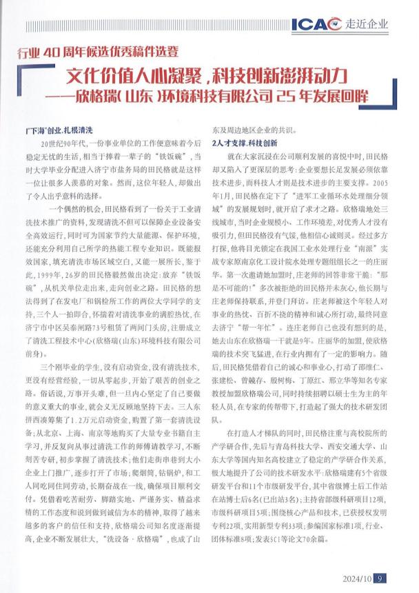 2024年是中國工業(yè)清洗行業(yè)規(guī);l(fā)展的第40個年頭,也是欣格瑞公司成立的25周年。40年來,中國工業(yè)清洗行業(yè)經(jīng)歷了從無到有、從小到大、波瀾壯闊的發(fā)展歷程,工業(yè)清洗行業(yè)在從業(yè)人數(shù)、技術(shù)水平、裝備能力、行業(yè)規(guī)模和社會影響等方面都發(fā)生了巨大的變化。過去的25年,欣格瑞與工業(yè)清洗行業(yè)一樣,也經(jīng)歷了初創(chuàng)、生存、發(fā)展的生命歷程。40年來,行業(yè)內(nèi)涌現(xiàn)出一大批優(yōu)秀企業(yè)和行業(yè)專家,我們一直在向行業(yè)前輩和標桿企業(yè)學(xué)習(xí),我們要向這些專家和優(yōu)秀企業(yè)致敬!我們回顧走過來的道路,總結(jié)分享我們的發(fā)展心得,衷心希望能為廣大同行提供一些有益的借鑒,以回報行業(yè)老師和同仁的厚愛。未來,欣格瑞將在行業(yè)協(xié)會的領(lǐng)導(dǎo)下,繼續(xù)艱苦奮斗,錘煉內(nèi)功,不斷創(chuàng)新,和廣大清洗行業(yè)從業(yè)者們一起努力,為中國工業(yè)清洗行業(yè)發(fā)展貢獻力量,助力中國清洗行業(yè)更繁榮,讓“中國清洗”的旗幟在世界各地勝利飄揚。