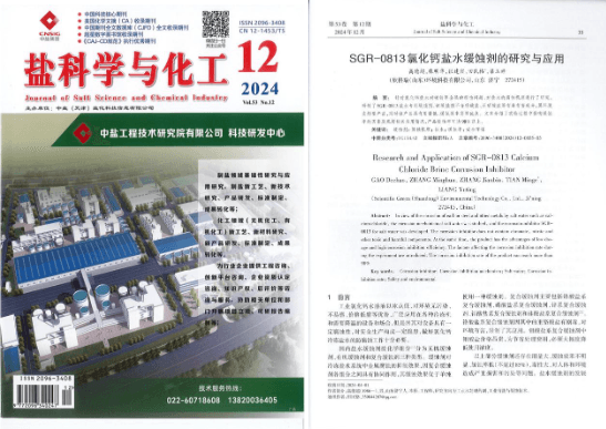 另外,研發(fā)中心高德超、田民格等撰寫的《SGR-0813氯化鈣鹽水緩蝕劑的研究與應(yīng)用》論文,于《鹽科學(xué)與化工》2024年12月刊發(fā)表。